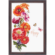 Bold, beautiful poppies in a small format design. Your Counted Cross Stitch kit includes 14-count black Zweigart Aida fabric, pre-sorted cotton thread, needle, chart and instructions. 17 x 17 cm.