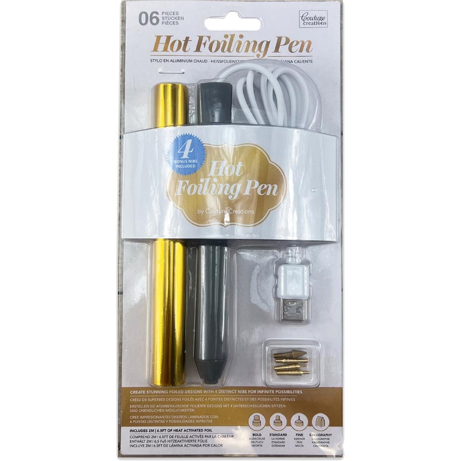 Add amazing effects to your projects with this hot foiling pen pack containing a pen with USB charger and a two metre roll of heat-activated foil, plus four unique nibs in different styles. Whether you’re looking for more ways to add a unique touch to your projects or wanting to learn a new skill, this pack is the perfect opportunity to learn the art of foil design.